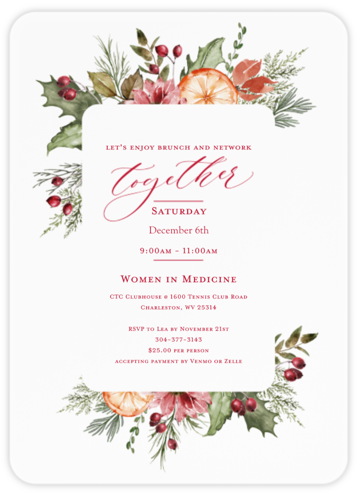 December 11, 2022: WIM Holiday Brunch - Coordinator and Host: Melissa Poulos, MD